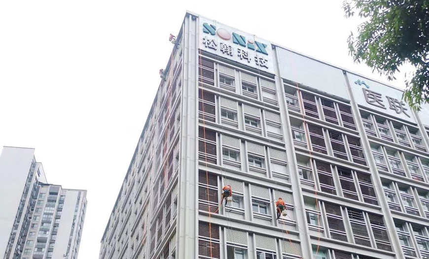 成都潔爾亮清潔對(duì)B區(qū)大樓外墻清洗服務(wù)。